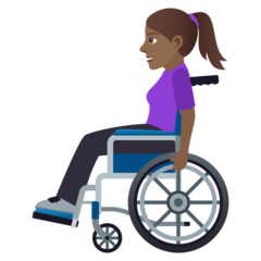 | Emocijzīmes | 👩🏾🦽 |