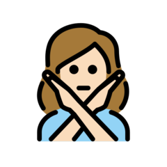 | Koda punkts | U+1F645 1F3FB 200D 2640 FE0F 1F645 - 🙅 Cilvēks Ar Aizlieguma žestu |